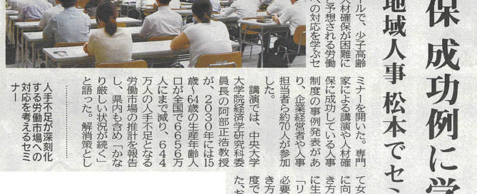 8月10日市民タイムス掲載「人材確保 成功例に学ぶ 地域人事 松本でセミナー」